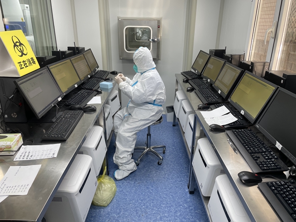 因为疫情原因已经打不到车了,我们支援医院的老师开着救护车专车来接我,在我看来那属实是极高的待遇。到医院后,便直奔方舱实验室。